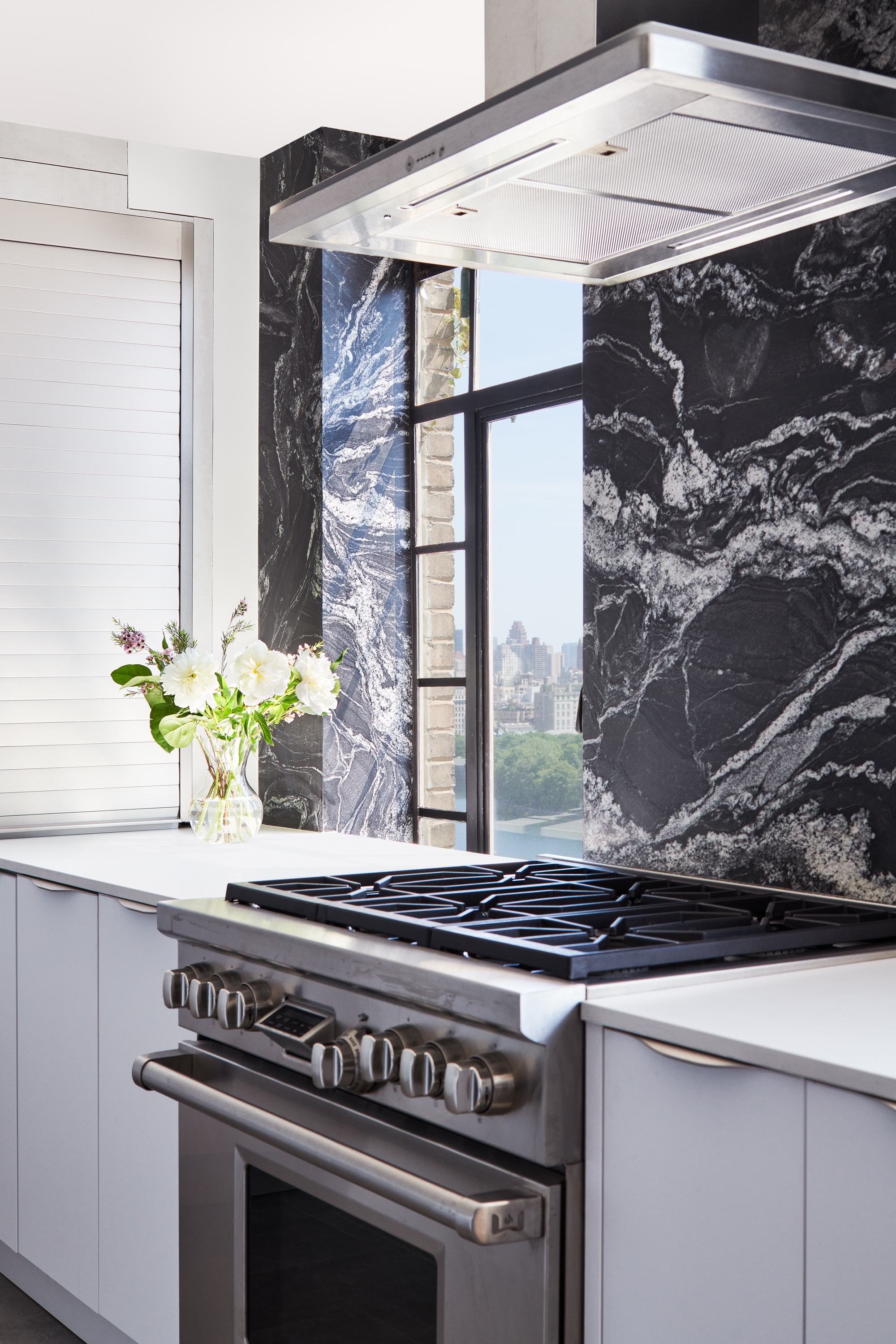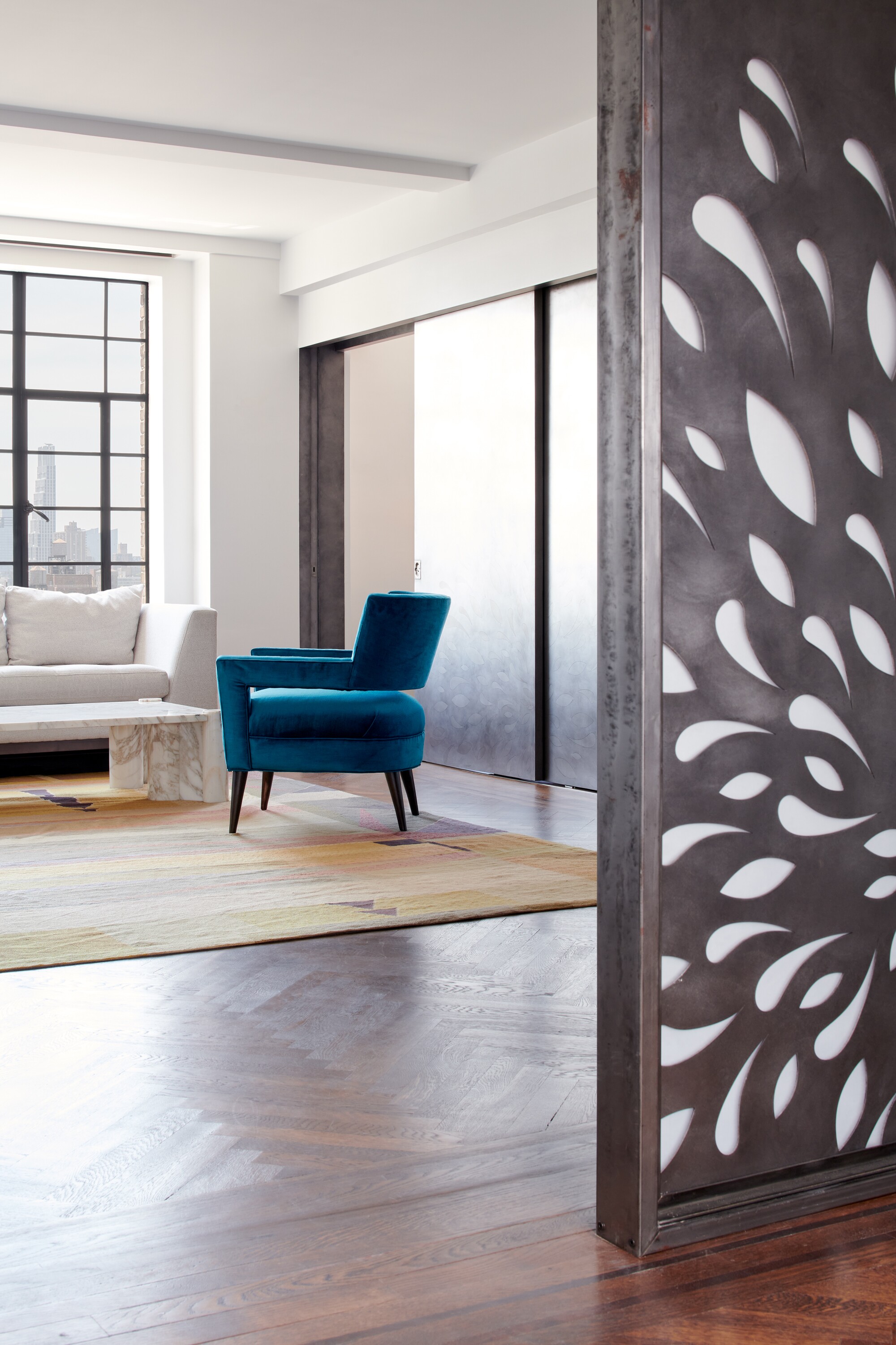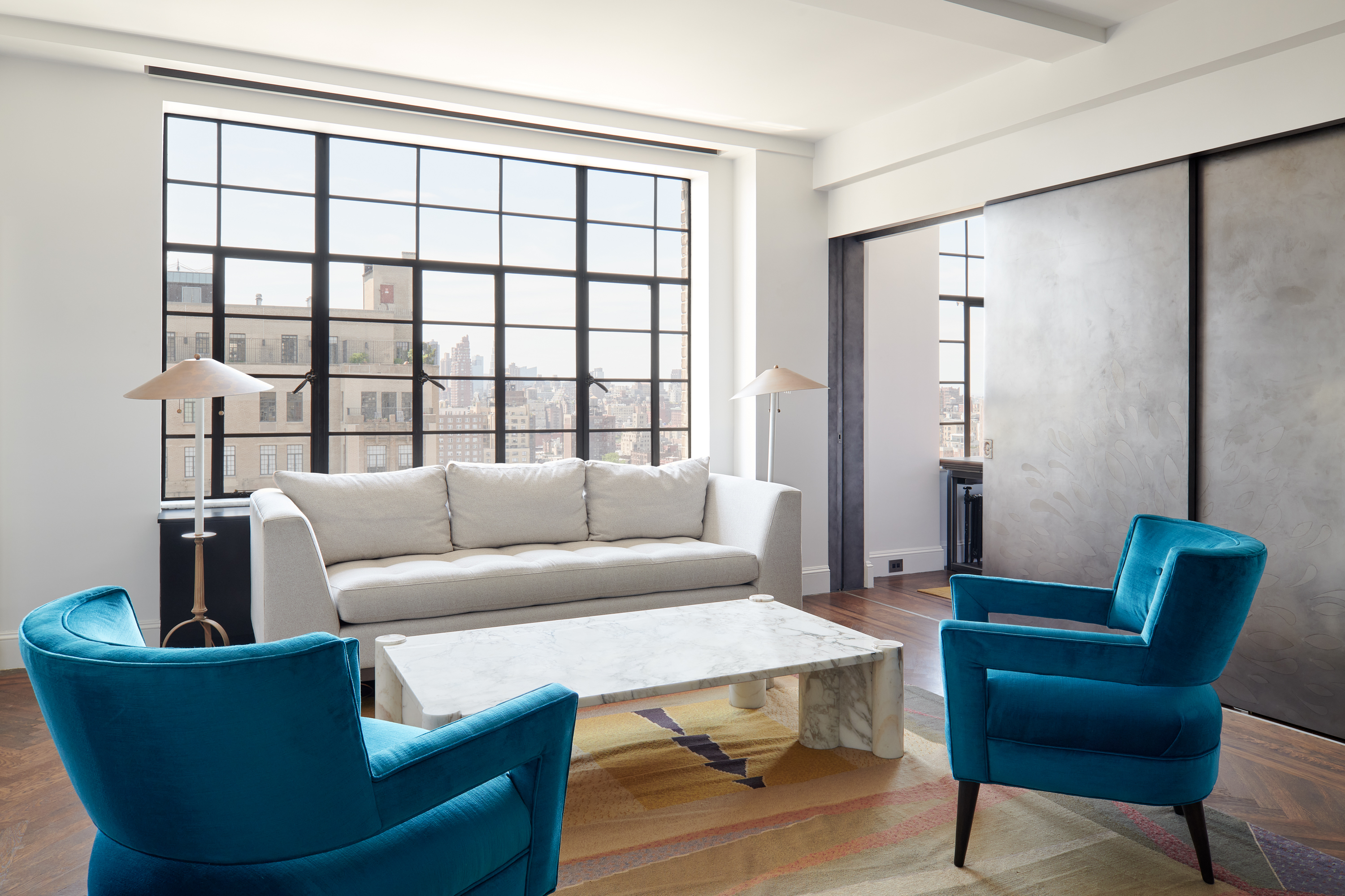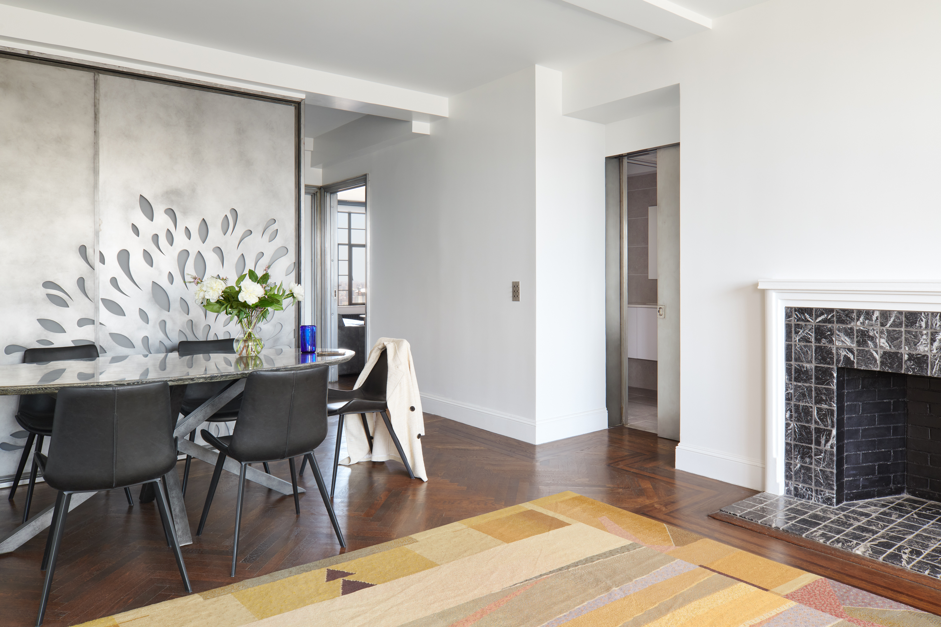 Located on the 20th floor in a 1920’s art deco style building, the apartment has beautiful southern exposure and views to central park. The three-bedroom two-bathroom apartment was redesigned to open up the space, accentuating the views from the apartment.